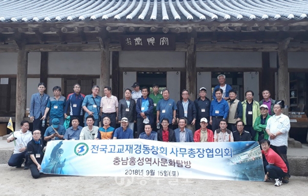 전국고교재경동창회사무총장협의회(회장 채신원) 산하 산악회(회장 이경학·홍성고 33회) 회원 50여명이 지난 15일 홍성역사문화탐방을 실시했다. 전국고교재경동창회사무총장협의회(약칭 전사협)는 전국의 명문고교 37개사 회원으로 참석하고 있다. 저작권자 © 홍주일보 무단전재 및 재배포 금지 홍주일보 다른기사 보기 페이스북 카카오톡 URL복사 기사공유하기