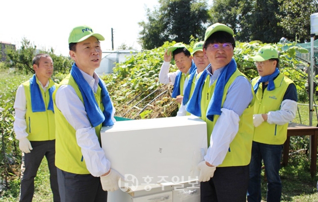 농협중앙회(회장 김병원)의 사랑의 집고치기 농가희망봉사단(단장 이대엽)과 충남농협(본부장 조소행) 봉사단원 40여명은 충남 천안 관내 농가 총 6가구를 대상으로 사랑의 집 고치기 봉사활동을 실시하며 군서리마을 경로당에 에어컨과 생활용품을 기증했다. 저작권자 © 홍주일보 무단전재 및 재배포 금지 홍주일보 다른기사 보기 페이스북 카카오톡 URL복사 기사공유하기