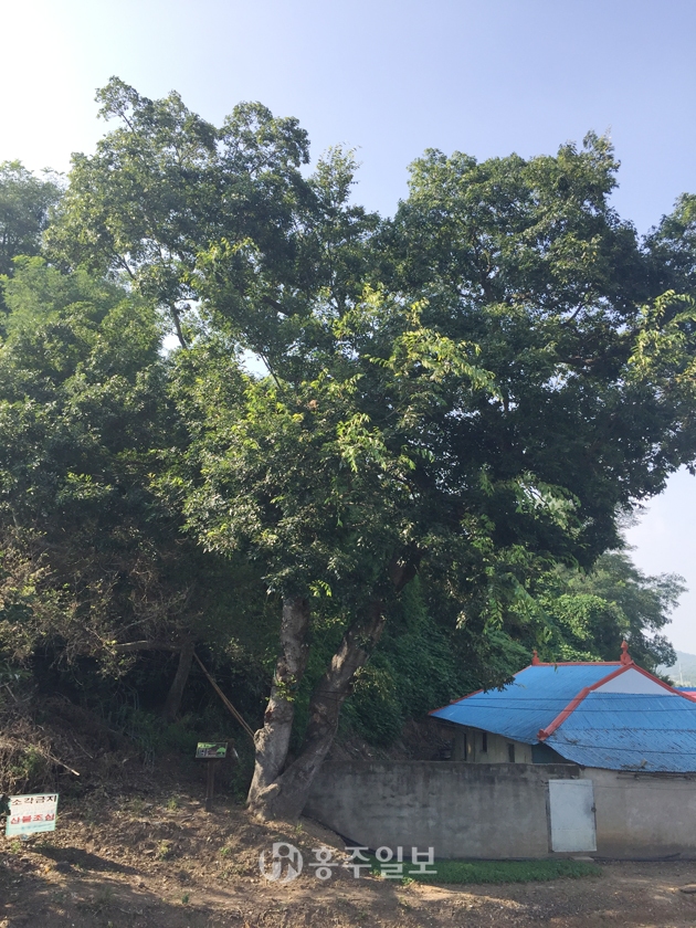 결성면 금곡리 462-1번지에 위치한 수령 150년으로 추정되는 팽나무는 1982년 보호수(지정번호 8-12-8-4-304)로 지정된 정자목이다. 나무높이는 약 15m이고 나무둘레는 170cm가량이다. 보호수 주인의 말에 의하면 “위쪽으로 훨씬 크고 오래된 어미나무가 있었는데 보호수 지정되기 훨씬 이전에 누군가가 베었고, 그 나무의 새끼나무가 이 보호수”라고 설명했다. 보호수는 큰 상처가 두 개나 있지만 전문가의 관리가 이뤄진 것으로 보이며, 안내판은 최근에 보수됐다. 조경석 등으로 보호수 주변이 꾸며져 있지는 않지만, 주인의 관리로 인해 주변정리는 양호하다.