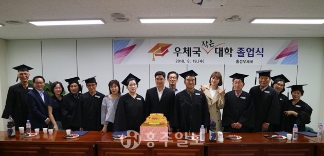 홍성우체국(국장 이계연)은 지난달 19일 강사 및 수강생, 우체국 관계자들이 참석한 가운데 우체국 소회의실에서 우체국 작은 대학 졸업식을 가졌다.<사진>