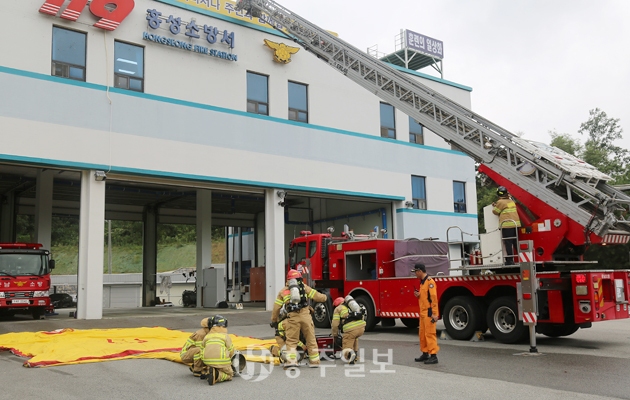홍성소방서(서장 송원규)는 지난 2일 청사 내에 설치된 복합훈련장에서 불시 출동훈련을 실시했다고 밝혔다. 이번 훈련은 재난 현장 초기 상황판단과 작전 운영 등 지휘관 및 대원의 현장대응 능력을 향상하고자 추진됐다. 저작권자 © 홍주일보 무단전재 및 재배포 금지 홍주일보 다른기사 보기 페이스북 카카오톡 URL복사 기사공유하기
