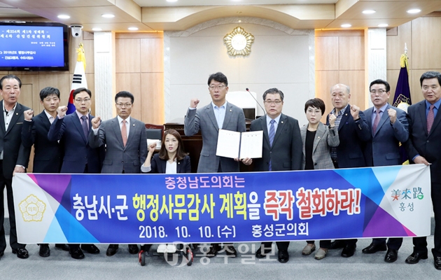 홍성군의회 11명의 의원은 “충남도의회가 지난달 9월 14일 제306회 임시회에서 충남 시·군에 대해 행정사무 감사 및 조사를 직접 실시하겠다는 계획을 채택한 것은 지방자치제도의 근간을 흔드는 위험한 발상이며 기초의회의 권한을 심각하게 침해하는 행위”라며 목소리를 높였다. 이어 “이는 지방자치분권에 역행하는 것이고 지방자치를 심각하게 훼손함은 물론 행정기관 간의 갈등만 유발할 뿐”이라며 “충남도의회 차원의 행정사무감사를 실시하는 것은 단지 도의회 권한을 높이겠다는 발상과 시·군에 대한 영향력 강화 목적 외에는 명분이 없다”며 비민주적인 결정을 강력 규탄했다.