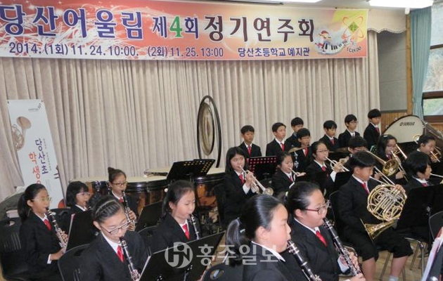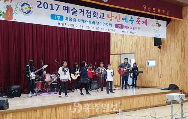 농산어촌 지역에선 보기 드물게 방과후학교 프로그램인 당산어울림오케스트라는 지난 2011년 3월 창단해 올해로 8년째를 맞고 있다. 평소 주변에서 경험하지 못하는 음악의 새로운 세계를 열어준 어울림은 그야말로 문화 불모지와 다름없는 지역에 단비와 같이 문화갈증을 해소해주는 역할을 하고 있다. 어울림오케스트라는 정규수업이 끝난 오후 3시부터 5시까지 매일 두 시간씩 예지관에 모여 관현악의 기본 연주법과 합주 등을 병행하며 수업을 하고 있다. 어울림오케스트라와 한가락 사물부 활동의 가장 큰 자랑거리는 지역주민에게 되돌려 주는 재능기부 활동이다. 매년 지도교사와 함께 지역의 사회복지기관 및 노인정, 지역행사 초청 연주 등의 재능기부 활동을 꾸준히 실시, 지역주민들로부터 호응을 얻고 있다. 당산초등학교는 충청남도에 2개교뿐인 예술거점학교로 지정돼 많은 문화예술체험을 진행하고 있다. 기존의 관악부 정기연주회를 확대·발전 시켜 학생과 학부모뿐만 아니라 인근학교인 유곡초등학교 밴드부 학생들도 참여해 큰 호응을 얻고 있다. 예술거점학교 당산예술축제 행사에서는 당산초등학교의 자랑인 신바람 사물놀이부와 당산어울림 학생오케스트라 연주 등으로 진행된다. 각 프로그램은 전년도 교육수요자의 만족도 조사 및 사전수요조사를 통해 결정되며, 4월 개학 첫날부터 맛보기 수업을 시작으로 운영된다. 학생 본인의 희망에 따라 자유롭게 프로그램을 선택할 수 있고, 학부모, 해당 강좌의 강사, 담임교사와의 상담 후에 원하는 프로그램으로 변경도 가능하다. 프로그램의 교육 질 확보를 위해 1강좌 당 학생 수를 20명 내외로 제한하고 있으며, 프로그램에 성실하게 참여하는 학생에게는 다음 학기 프로그램 선정 우선권을 부여해 방과후학교 프로그램에 학생이 적극적으로 참여하도록 유도하고 있다.