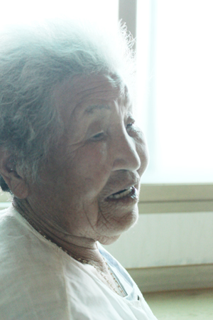영감이 군인 갔는디 그 때는 군인 가면 죽는다고 대막대 7개 기다란 놈을 벼가지고 석 자씩 끊어서 글씨를 써갔고 묶어서 식전이면 대문에 꽂아놨어. 저녁이면 이슬 안 맞게 들여놓고 그렇게 해야 산다고. 그렇게 지성을 들였어. 저녁이면 샘 가서 물 떠다 마당 가서 빌고 절하고 그랬어. 그래 죽지 않고 살아오기는 했어. 6·25때는 애지연이라는 데루 갔어. 상대방이 다 죽어 쓰러지더래. 자기가 보니께 자기가 죽으면 안 되겠더래. 그래 나가서 훈련 가르치는 데로 들어갔댜. 그래서 살아왔다고 하드라고. 그 때는 지성 안 들였어. 일허느라고 애썼어. 밭 매고 보리 방아 쪄서 밥 해대고 삼 삶고 명 잡고 누에 쳐서 명질허구 안 한게 워딨어? 쉴 날이 워딨어. 산에 커다랗게 건조장 해놓고 거기다 누에를 치는디 고치가 하얗게 지쳐서 따 놨는디 그거 누가 와서 가져갈까봐 내가 거기서 혼자 잤어. 산고랑에서. 무서운 것도 읎더라니께. 그러커구서 고치 따서 팔고 젊어서부터 지금까정 편케를 못해서 살어. 일해야 먹구 살어.