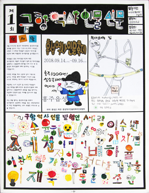 구항초등학교 김우겸 외 23명의 학생이 제작한 구항역사인물신문이 2018 홍주신문 NIE대회에서 대상으로 선정됐다.<사진>