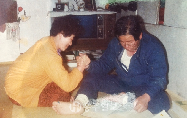 딸 둘 낳았는디 다섯 살 때까지 읎는겨. 또 딸 낳을까봐 시어머니는 내쫓는다고 야단해싸고 딸 둘 낳고 보니 아주 무서워. 막내아들은 유산시킬라 했어. 또 지지배인 줄 알고. 그럭저럭 허다가 보니 아들이래. 그래 갠신히 아들 둘 낳어. 그 때가 제일 좋았대. 큰 아들 낳았을 때. 예전에 내가 풀빵틀이 요만헌 게 있었는디 수술허구서 부드러운 걸 먹어야 혀. 풀빵이 제일 좋다는겨. 저녁에 자다가두 배고파 그러믄 그 추운디 일어나서 연탄 갔다가 구워서 아배 4개 먹고 내가 4개 먹는겨. 난달에서 쪼글티고 앉아서. 그 추운디. 이제는 내가 기술자가 된겨. 지금도 교회나 행사 하믄 그 떡을 혀, 술떡이지. 얼마 전에 내가 그랬어. 우리 사위들 한 번도 안 빠지고 와서 고맙다고 항상 인사허지, 자기도 고맙다고 한마디 혀. 그랬더니 할매 데려다놓고 맨 고생만 시키고 내 뒷바라지 허느라 애쓰고 고마웠어. 그 말을 진작 했어야 하는데 지금 처음 허는디 너무 고맙고 미안했어. 내가 사랑헌다구 한 번 안 했잖여? 여보라고 한 번 혀. 죽기 전에 넘들 여보 여보 허는디 부럽더라, 부르긴 뭘 불러. 밥 줘 그러고 말지. 첫 애 대강 부르던가. 여보라고 한 번만 해라. 그랬는데 안 해줘. 근디 엊그저께 들은겨. 자식들 있는데서 해라. 그랬더니 ‘사랑해 여보’ 어유, 나 오늘 저녁에 죽어도 원 없다고 그랬어.