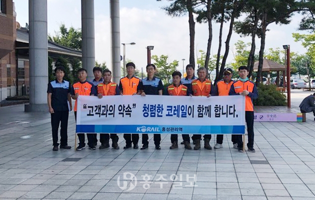 한국철도공사 천안시설사업소 예산시설팀은 지난 4일 홍성역에서 철도이용 고객을 대상으로 청렴활동 및 교통안전 캠페인을 진행했다. 이번 캠페인은 교통안전 및 청렴문화 확산과 대국민 청렴의식 제고와 반부패청렴문화 확산을 위해 실시됐다.