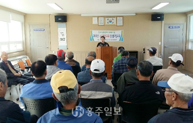 면내 경로당 30여 명의 회장들을 상대로 최춘희 강사가 교육을 진행했다. 특히 노후생활에 행복한 삶을 준비하는 삶을 사는데 역점을 뒀다. 행복이란 사람과의 관계이고 관계는 소통으로 하여금 이뤄진다는 것이다. 우선 내가 나를 사랑하고 진실된 마음으로 남을 바라보고 제대로 표현하고 칭찬하고 그리고 베푸는 것이란다.