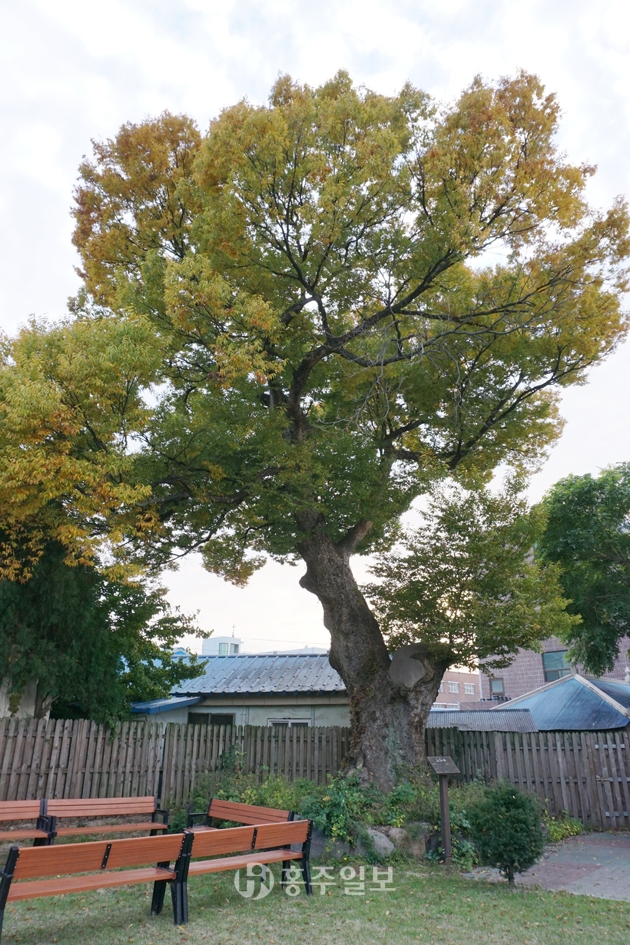 보호수는 홍성읍 태평식당 뒤편의 홍성예비군지역대 부지 내에 위치해있다. 한쪽 큰 기둥에 큰 상처가 있지만 오래전 잘 치료된 것으로 보이며, 그 외 보호수의 전반적인 건강상태는 매우 양호하다. 주변 조경석이나 주민들이 앉아 쉴 수 있는 의자도 잘 준비돼있으며 정돈도 잘 돼 있다. 하지만 안내판이 글씨가 잘 안 보일정도로 매우 낡아 보수가 필요하다.