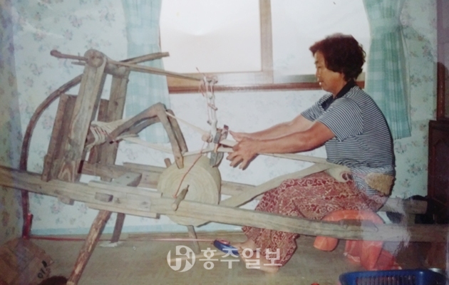 홍동면 수란이 고향이여. 왕지가 한 부락이었는데 다른 부락이 됐지. 스물한 살에 일루 왔어. 아버지가 엄해서 연애를 할 수도 읎어 중매해서 왔지. 시아버지, 시어머니, 시동생, 시누는 결혼했구. 우리 아버지가 식구들 간편하다구 가라고 해서 왔지. 오남매 뒀지. 넷이 아들, 막내가 딸. 내가 안 뵈아서 애들 가르치느라 너무 힘들었어. 땅도 팔구 일도 무쟈게 했어. 우리 집 양반도 배운 거 읎은께 서울 가서 노동 일 했지. 그 어려운 벽돌 같은 거 빼고 나두 거기 가서 더러 일하고. 시골서 길쌈 삼베 700자까지 짰어. 1자가 1미터도 안 돼. 애들 등록금 허느라구 밤낮없이 삼은거여. 이빨로 삼아가지고 지금 이빨이 다 삭았잖아. 지금은 한 자에 만 원, 옛날에는 삼천 원했어. 700자 팔러 예산에 갔어. 엄청나게 많이 가지고 가니까 이걸 사람이 짰겄어? 하는겨. 안 믿드라구. 시어머니가 쓰던 베틀인데 장사가 가져가서 지금은 읎어. 여기만 해도 길쌈하는 집 읎었어. 날고 짜고 매고 우리 시어머니가 많이 하셨지. 그래 그렇게 돌아가셔서 안쓰럽고 그래. 그렇게 해도 등록금 한 번밖에 못 내. 애들이 두 살 터울이거든? 한 번에 대학을 셋두 갔슈. 엄청나게 어려웠어. 그래도 애들이 공부를 잘했어. 셋째 아들은 홍고에서 전교 1, 2등 계속 해서 학교 앞에서 자취했어. 내가 밥 해줘가며. 한 번은 선생 변또를 네 개 싸오래. 소풍 가는디. 선생은 몰르지 형편이 어려운 지. 우리 아들이 와서 걱정하는겨. 엄마 4개 싸오라는디 으떡해유? 걱정하지 마, 내가 할게, 그러구 선생 변또는 조금 다르게 싸야 하잖아. 우리네 매로 쌀 수가 있남? 그래서 소고기 사다가 볶아서 싸서 줬지.