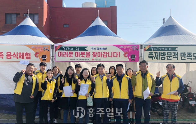 광천읍 지역사회보장협의체는 지난 13일 제23회 새우젓·광천김 대축제 현장에서 무료 커피봉사와 함께 협의체 홍보에 나섰다.<사진>