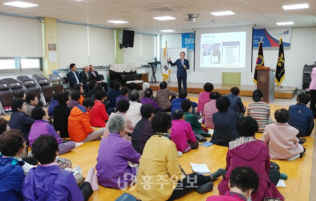 민주평화통일자문회의 홍성군협의회(회장 조태원)는 지난 23일 홍성군 노인종합복지관 강당에서 지역주민 150여명이 참석한 가운데 지역 내 평화담론 형성 및 통일공감대 확산을 위해 2018 통일시대 시민교실을 개최했다.<사진>