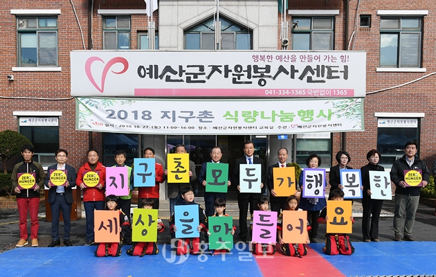 예산군은 지난달 27일 예산군자원봉사센터(센터장 정낙규)가 주관하는 2018 지구촌 식량나눔행사를 실시했다고 밝혔다.<사진>