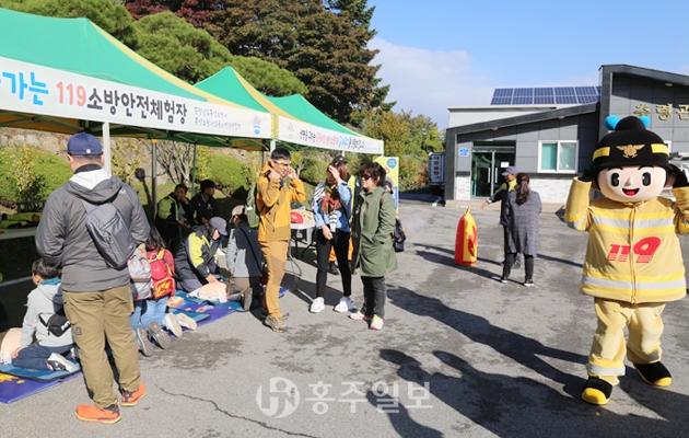 홍성소방서(서장 송원규)는 지난달 27일 남산 일원에서 개최된 ‘내포문화숲길 2018 홍성 걷기행사’ 행사장에서 119소방안전체험장을 운영했다. 이날 행사는 심폐소생술 체험, 소화기 사용법 및 체험 등과 주택용 소방시설 홍보 부스를 마련해 운영했다.