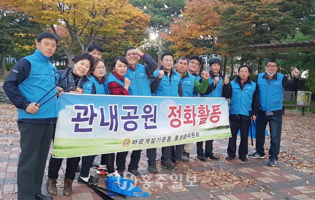 홍성읍 바르게살기위원회(회장 유병근)가 지난달 25일 대교공원일원에서 회원 20여명이 참여한 가운데 환경정화봉사활동을 펼쳤다.<사진>