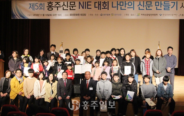 2018 홍주신문 NIE대회는 한국언론진흥재단, 지역신문발전위원회, 홍성교육지원청의 후원·협조로 지난달 1일부터 지난 12일까지 관내 초·중·고등학교를 대상으로 공모했다.