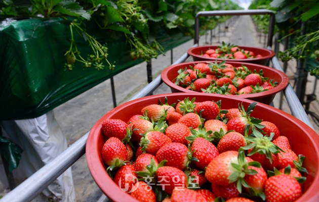 홍성 딸기가 본격적인 겨울철을 앞두고 첫 수확 후 출하가 시작됐다. 군에 따르면 지난 주 금마면 소재 화전 작목반을 선두로 딸기 첫 수확이 진행되면서 지난 9일 서울 가락동 도매시장에 첫 출하를 시작했다고 밝혔다.