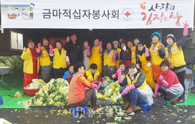 금마면 적십자 봉사회(회장 이정희)는 금마면사무소의 협조와 봉사회 기금으로 지난 13일~14일 400포기의 김장을 담아 금마면내 소외계층, 저소득층, 독거어르신들에게 전달할 예정으로 올겨울 월동준비의 시작을 알렸다.<사진>
