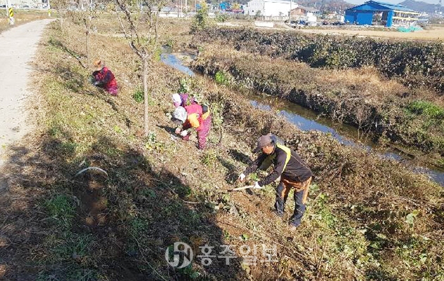 구항면이 상지천변 약 8km에 식재된 이팝나무의 생육을 촉진하고 걷기 좋은 명품 가로수길을 조성하기 위해 지난 15일까지 칡덩굴 등 제거 작업에 나섰다.<사진>