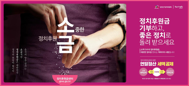 또한, 정치후원금센터를 통해 기탁하는 때에는 신용카드, 계좌 이체, 신용카드 포인트 등 다양한 방법으로 기부가 가능하며 연말정산 시 최고 10만원까지 세액공제를, 10만원을 초과한 금액에 대해서는 일정 비율에 따라 소득공제 혜택을 받을 수 있다.