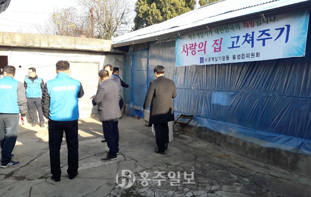 이미화 회장은 “부녀회원들의 작은 관심과 정성으로 마련한 떡을 어르신들이 맛있게 드시는 모습을 보니 기쁘고 보람된다”며 “부녀회원들의 정성을 모아 앞으로도 이웃과 함께하는 사랑 나눔 봉사활동을 지속적으로 펼쳐나가겠다”고 말했다. 또한 홍성군바르게살기위원회(회장 유병근)에서도 주거환경이 열악한 홍성읍 내법리의 저소득 복지사각지대의 유 모 씨 댁에 사랑의 집수리 봉사활동을 펼쳤다.<사진>