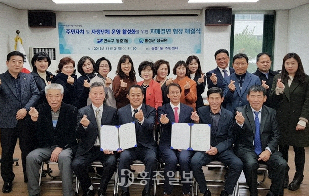 장곡면이 지난달 21일 인천시 동춘1동 주민센터에서 인천시 동춘1동과 도·농간 협력과 상생을 위한 자매결연 협약을 체결했다고 밝혔다.<사진>