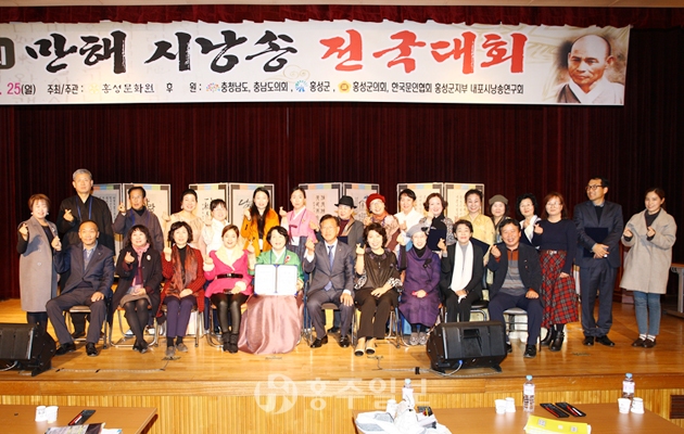 제1회 만해 시낭송 전국대회가 지난달 25일 홍성문화원에서 개최됐다.<사진> 만해 한용운 시인의 시를 좋아하는 전국의 시 낭송인들이 모여 만해 한용운 생가지를 답사하고 시 낭송 대회를 진행했다. 지난 1일부터 온라인으로 신청을 받아 전국에서 50여 명의 시 낭송인들이 참석했다.