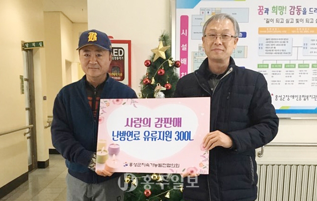 홍성군지속가능발전협의회(회장 백청기)는 지난달 26일 에너지 빈곤층장애인에게 유류 300L를 전달했다. 홍성군지속가능발전협의회와 홍주고등학교 학생들로 구성된 장독대 봉사단원들이 농촌 일손 돕기의 일환으로 감을 수확해 마련했다.