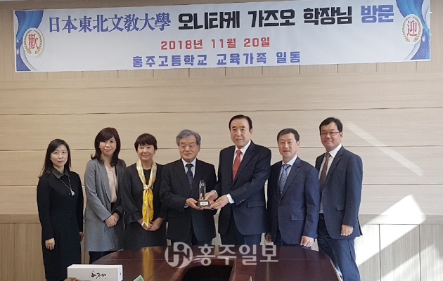홍주고등학교(교장 구철모)는 지난달 20일 본교와 MOU를 체결한 일본 동북문교대학 오니타케 가즈오 학장의 내교를 통해 양교 발전의 긍정적 기여와 해외 유학을 희망하는 본교 학생들에게 해외 유학의 꿈을 한층 현실화하는 기회를 가졌다. 신암학원 이규용 이사장은 “환영의 인사와 더불어 양교 발전에 긍정적 기여를 위해 노력하겠다”고 말했다.