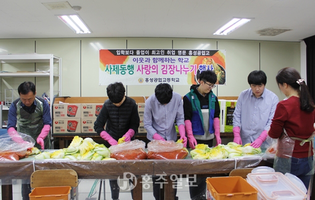 홍성공업고등학교(교장 강진봉)는 지난달 21일 사제동행 김장 봉사활동을 실시했다.<사진> 이번 봉사활동은 2018 매력적인 직업계고 육성사업의 ‘이웃과 함께하는 학교’ 팀에서 추진하는 프로그램으로 ‘함께하는 우리, 더불어 활동하는 즐거움’이라는 주제로 진행되는 지역사회 김장 나눔 봉사활동이다.