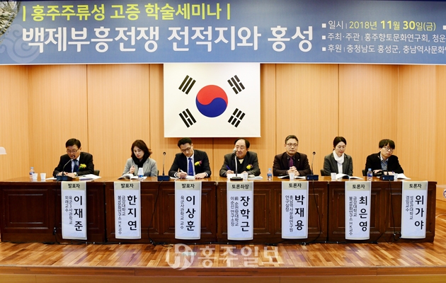 2018 홍주주류성 고증 ‘백제부흥운동 전적지와 홍성’ 학술세미나가 지난달 30일 홍성군청 대강당에서 열렸다.<사진> 홍주향토문화연구회와 청운대학교 남당학연구소가 주관하는 이번 세미나는 홍성군과 충남역사문화연구원, 육군 제1789부대가 후원했다.