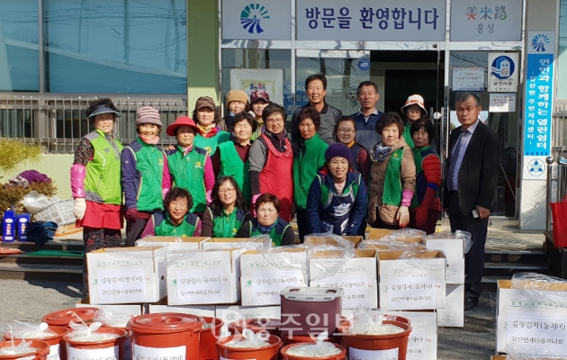 ▲ 갈산면 새마을부녀회 30여 명은 지난달 20일 경로당 32개소에 약 3톤 분량의 동치미(물김치)를 전달하고, 홍북읍 새마을지도회는 20일과 21일 어려운 가정에 1000여 포기의 김장김치를 전했다.