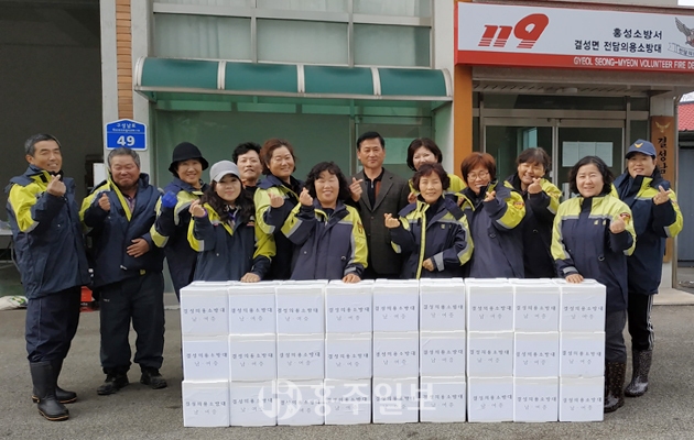 ▲ 결성면은 지난달 24일 남녀자율방범대 회원 40여 명이 관내에서 기부 받은 배추와 교촌고추작목반의 고춧가루 등을 사용해 배추 500포기를 김장해 소외된 이웃 30가구에 전달했다.