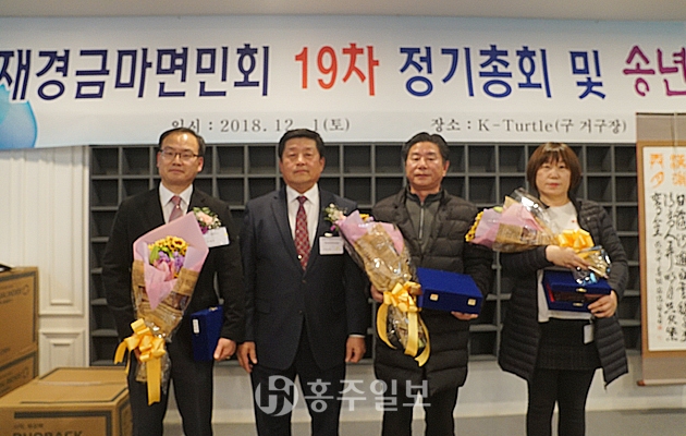 재경금마면민회(회장 이상범) 제19차 정기총회 및 송년의 밤 행사가 지난 1일 서울 신촌소재 케이터틀 신관컨벤션홀에서 150여명의 회원들이 참석한 가운데 열렸다.<사진>