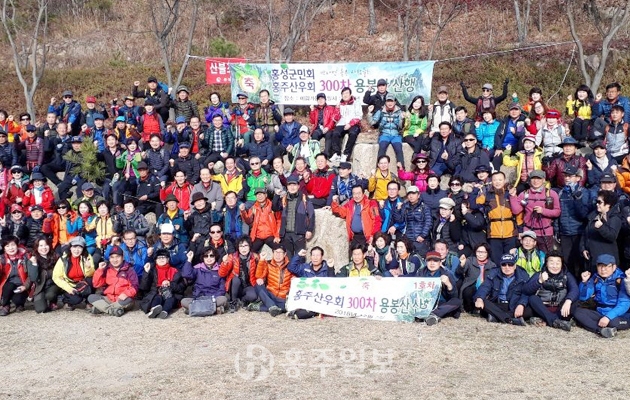 재경홍성군민회(회장 복봉규) 산하 홍주산우회(회장 김양섭)가 지난 2일 300여명의 회원들이 참석한 가운데 300회 정기산행을 용봉산에서 실시했다.<사진>