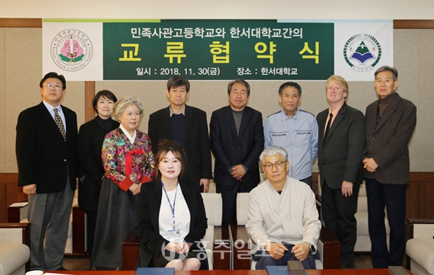 한서대학교와 민족사관고등학교가 2018년 동계 방학부터 양 기관이 운영하는 교육프로그램에 대한 상호협력협약을 지난달 30일 한서대에서 체결했다. 이번 협약을 통해 한서대 원어민교수 정식지원, 진로 및 직업 체험프로그램에 대한 상호지원을 약속했다.