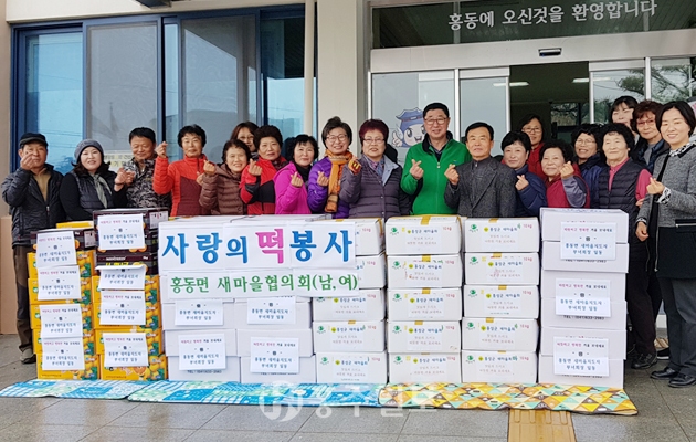 홍동면 새마을지도자회(회장 함동열)와 새마을부녀회(회장 한무홍)가 지난 4일 관내 어르신들을 위해 정성스럽게 마련한 시루떡과 과일, 김치 등 100여 박스를 준비해 각 마을회관에 전달했다.<사진>