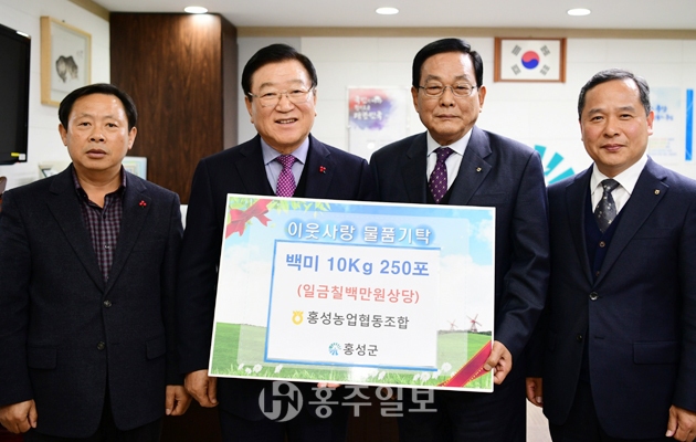 홍성농협(조합장 정해명)은 지난 6일 홍성사랑 장학회에 1000만 원과 홍성읍에 홍주골 사랑쌀 10kg 250포를 기탁했다.<사진>