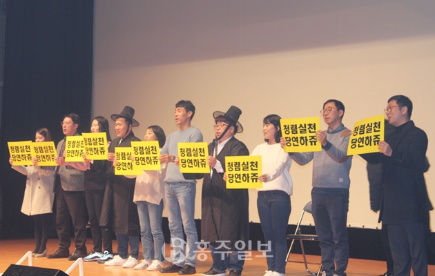 2018 홍성군 공직자 노·사 한마음화합행사가 지난 5일 홍주문화회관에서 열렸다. 공직자들의 노사 상호간의 유대를 강화하기 위해 마련된 이번 행사에 공무원 노조가 준비한 퍼포먼스와 포토타임, 홍지민과 더 뮤즈의 뮤지컬 갈라콘서트 등이 진행됐다.