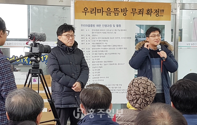 ‘품앗이 뜸’ 사건으로 법정다툼을 벌여온 홍동마을 주민들은 지난 달 23일 2심에서 무죄를 확정했다. <사진>
