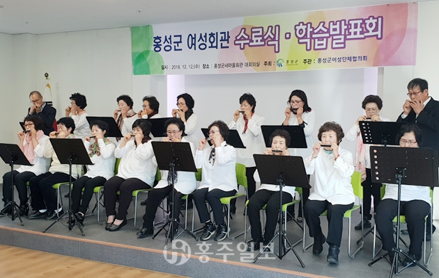 홍성군여성단체협의회(회장 전양숙)가 지난 12일 2018년 홍성군 여성회관 교육 수료식 및 학습발표회를 개최했다.<사진>