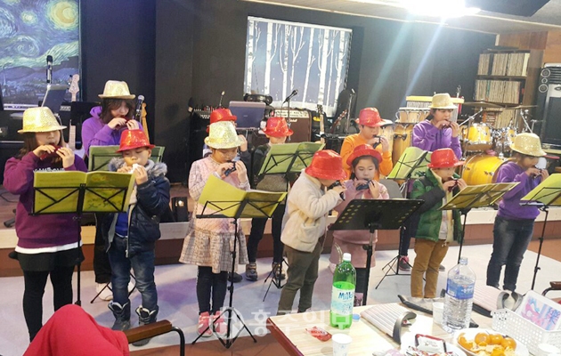 시화담요(詩畵談謠) 사랑방(대표 조성신·이종근)이 지난 18일 2018홍성군주말행복배움터 토요프로그램 사업 발표회를 시화담요 사랑방에서 열었다. 은하초등학교 학생 20여 명이 참여한 이번 발표회는 통기타, 팬플릇, 오카리나 등의 공연이 펼쳐졌다.