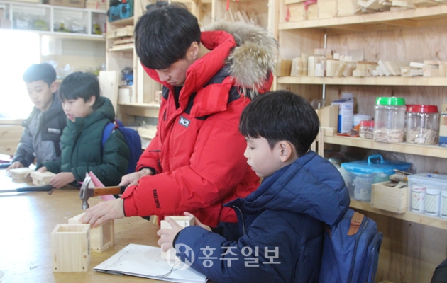 용봉산 이응노마을학교는 온 마을과 함께 아이를 키우는 2018홍성행복교육지구 사업의 일환으로 지난 9월부터 시작해 마을 신문 만들기, 연극 놀이, 캘리그라피, 가죽공예, 염색 등의 다양한 문화예술 프로그램이 진행됐다.