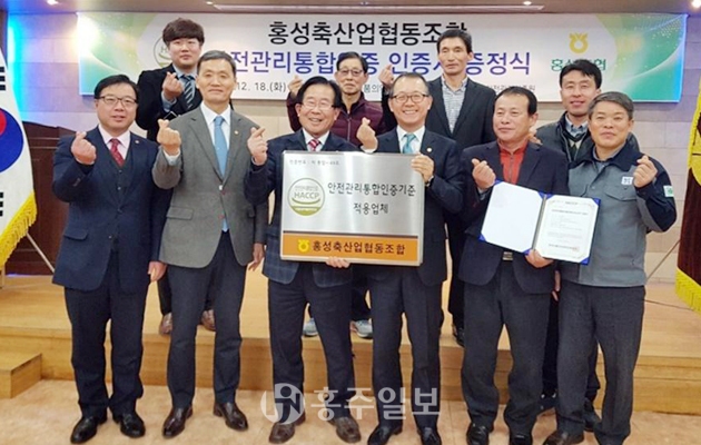 홍성축협은 지난해 4월에 HACCP인증원과 업무협약(MOU)를 체결하고, 대전지원(지원장 김영수)으로부터 HACCP 교육 및 현장 기술지원 등 다각적인 상호 업무협의를 주고받은 결과, 지난달 21일 HACCP황금마크를 획득하게 됐다. 홍성축협 이대영 조합장은 “안전관리통합인증 적용을 계기로 안전한 축산물을 소비자에게 공급한다는 자부심을 가지고 전국 최고의 안전관리통합인증 우수적용업체가 될 수 있도록 지속적으로 노력해 나갈 것”이라고 말했다. 장기윤 원장은 “안전관리통합인증은 농장부터 식탁까지 위해요소를 사전에 차단해 보다 안전한 먹거리를 공급한다는 HACCP의 취지를 충족시키는 제도”라며 “홍성한우가 안전관리통합인증을 획득한 만큼, 소비자로부터 사랑받고 더욱 즐겨 소비되는 브랜드가 되기를 기대한다”고 말했다.