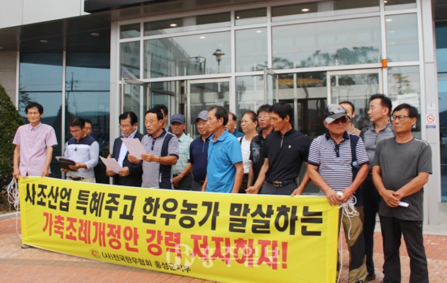 축산악취로 인한 민원이 끊이지 않는 가운데 주거밀집지역 1300m 이내 가축사육이 금지되는 조례가 통과됐다. 군의회는 지난 9월 7일 제253회 임시회에서 홍성군 가축사육 제한구역에 관한 조례 일부개정 조례안을 수정, 가결했다. 조례안은 주거밀집지역의 주택부지 경계로부터 직선거리로 1300m 이내 지역에 소, 젖소 등 사육시설을 제한하고, 돼지, 닭 등 사육시설은 2000m 이내 지역으로 제한한다. 또한 주거밀집지역의 기준을 주택 간의 거리가 100m 연접 주택수를 12호에서 7호로 강화했다.