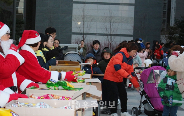 내포신도시 LH스타힐스 아파트(입주자대표회의 회장 조성훈)는 지난달 24일 아파트 분수마당에서 마을주민 400여명과 함께 ‘산타가 왔습니다’는 행사를 가졌다. 이날 MG새마을금고 내포지소와 홍북읍사무소 등이 지원했다.