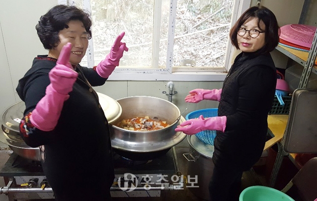 이날 총회에서 이점숙 부녀회장은 마지막 임기까지 최선을 다해 마을주민들이 함께 먹을 음식 준비에 여념이 없었다. 열심히 재료들을 씻고 다듬어 소고기무국을 준비하고 이정구 총무의 진행으로 회의가 진행됐다.
