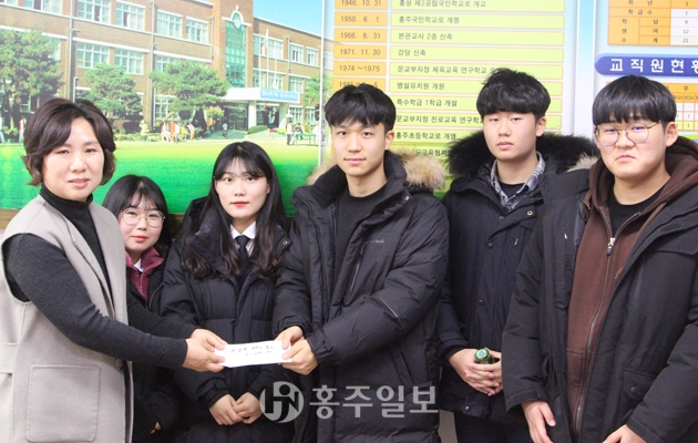 청로회 소속 홍주고등학교 학생들이 어려운 상황에 처한 학생에게 붕어빵 판매 수익금을 전달했다.