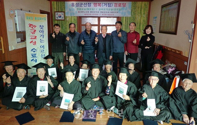 홍성군이 선정한 은하면 장척행복거점경로당(회장 이회천) 찾아가는 어르신 한글교실 수료식이 지난달 19일에 진행됐다.