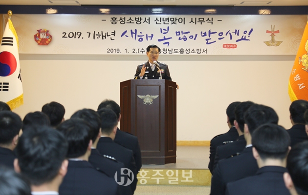 홍성소방서(서장 송원규)는 지난 2일 대회의실에서 전 직원이 참석한 가운데 희망찬 새해를 맞이하기 위한 시무식 행사를 개최했다. 시무식 종료 후 송 서장은 직원들과 신년인사를 하며 올해도 모두 건강하고 행복이 충만한 한 해가 되길 기원했다.
